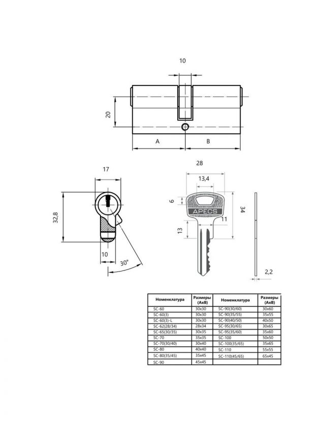 • Цилиндровые механизмы Apecs серии SC - одни из немногих существующих на рынке России цилиндров, которые прошли испытания и сертификацию в России. Серия SM предназначена для установки во входные двери и обеспечивает уровень защиты, соответствующий 2 классу (из 4 возможных) по российскому ГОСТу.