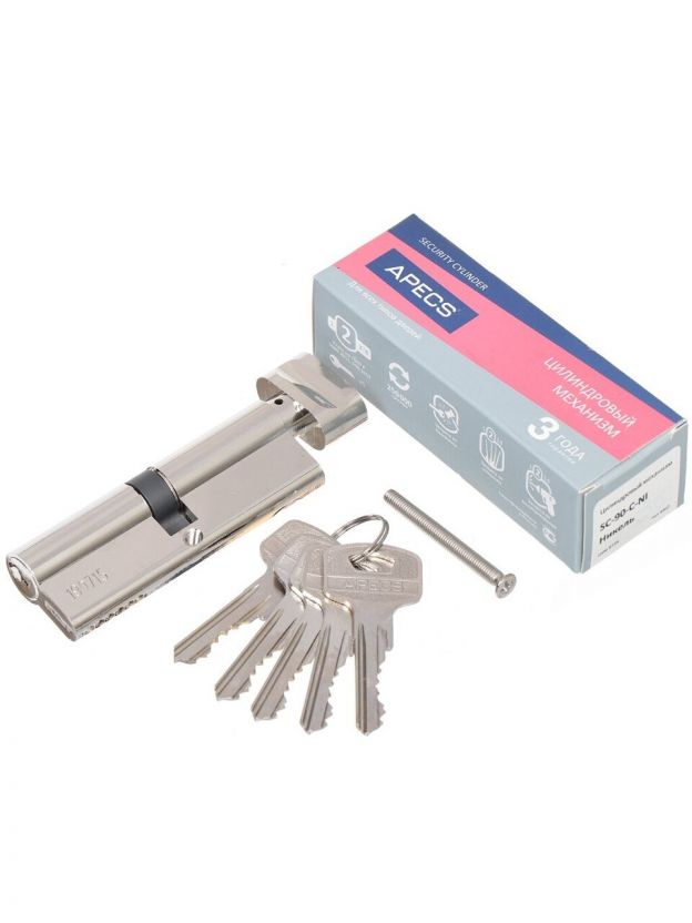Личинка замка двери Apecs, SC-90-C-NI (SC-90-Z-C-NI), 8735, 90 мм, никель, 45/45