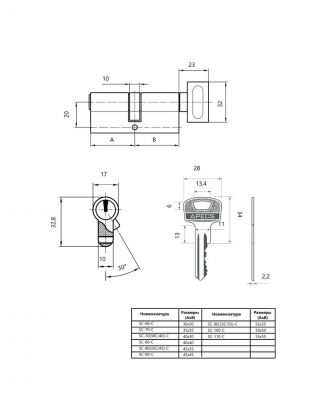 Теоретическая секретность серии SC - свыше 46000 комбинаций. Для вскрытия методом подбора при скорости перебора 1 ключ в секунду злоумышленнику потребуется более 12 часов.
