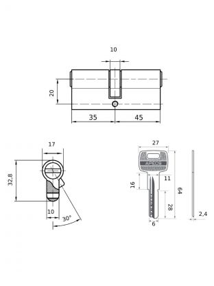 - Типоразмер цилиндра: 35/45 мм