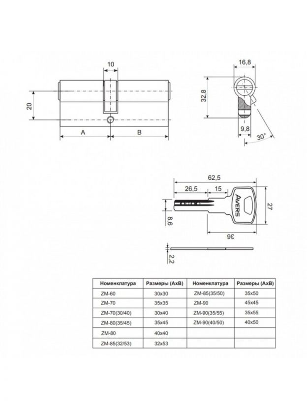 Цилиндровые механизмы Avers ZM - бюджетные цилиндры из ЦАМа, предназначенные для комплектации замков под евроцилиндр 1 класса. Рекомендуются для установки в межкомнатные и входные двери.