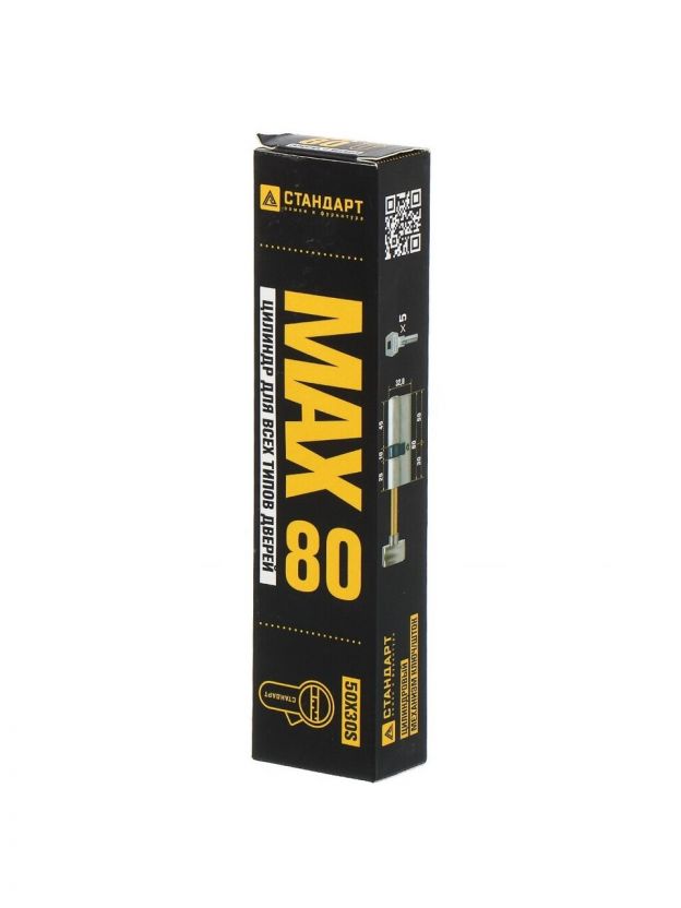 Личинка замка двери Стандарт, MAX 80 S (50x30S) SN, 14 848, 80 мм, матовый никель, 5 перфоключей/вертушек