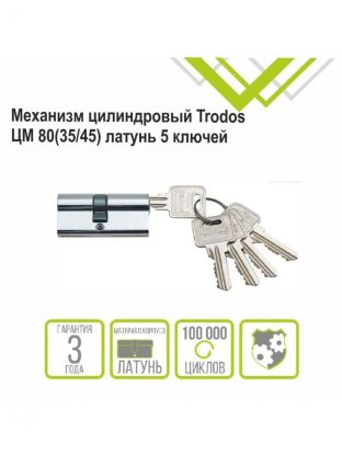 Личинка замка двери Trodos, ЦМ, 209214, 80 мм, хром, блистер, 5 ключей