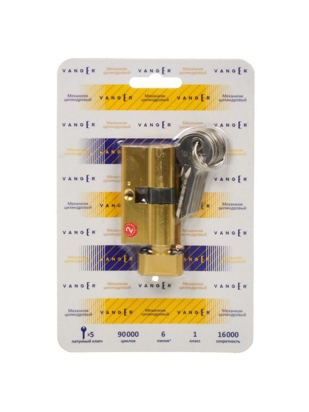 Личинка замка двери Vanger, EL-60-C-G, 29690, 60 мм, с заверткой, золотая