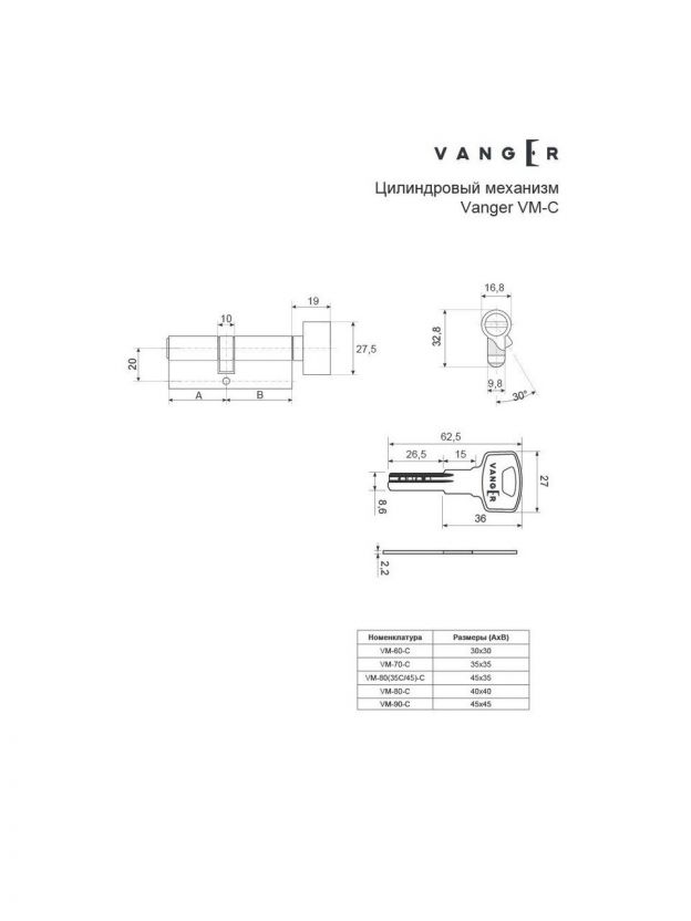 - Типоразмер цилиндра: 35/45.