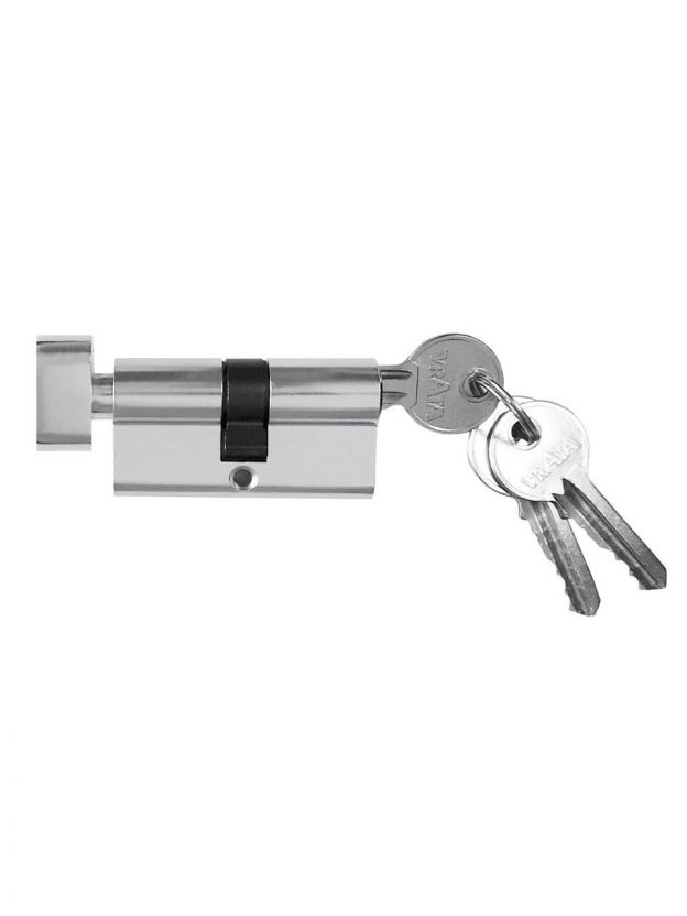 Личинка замка двери Vrata, ЦМВ 60(30/30), 208222, 60 мм, с заверткой, хром, алюминий, 3 ключа