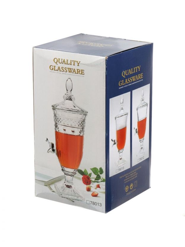 Диспенсер для напитков "Лимонадница" представляет из себя классический графин для холодных напитков с удобным краном. Выполненная из высококачественного стекла и украшенная красивым рельефным узором, емкость оснащена закрывающейся стеклянной крышко, которая не позволит выдохнуться аромату ваших напитков. Элегантный дизайн изделия украсит собой любой праздничный стол, в таком диспенсере Вы сможете подать вино, морс, различные наливки и ликеры, цвет которых будет играть, преломляясь через рельефные внешние грани сосуда.