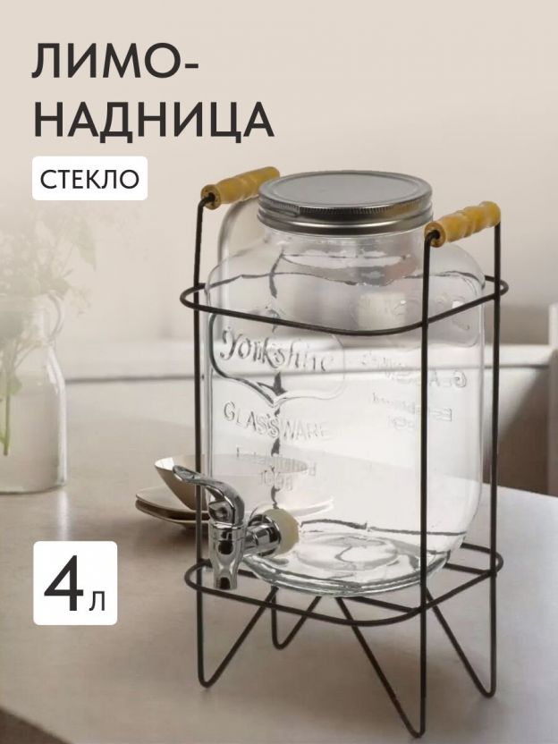 Лимонадница стекло, 4 л, с крышкой, B090058, прозрачная, с подставкой