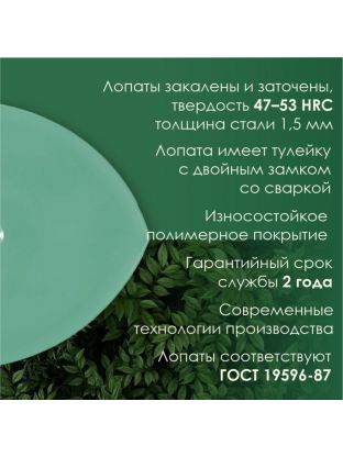 Эта лопата штыковая сочетает в себе прочность и функциональность. Благодаря полимерному покрытию, она устойчива к коррозии и износу, что значительно увеличивает срок службы инструмента. Удобный черенок обеспечивает комфортное использование, а его отсутствие рукоятки на черенке позволяет легко адаптировать инструмент под любые задачи.