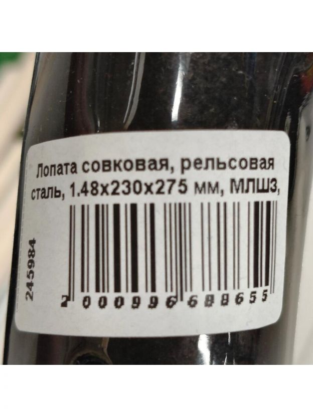 Лопата совковая, рельсовая сталь, 1.48х230х275 мм, МЛШЗ, Графит, 0.8 кг