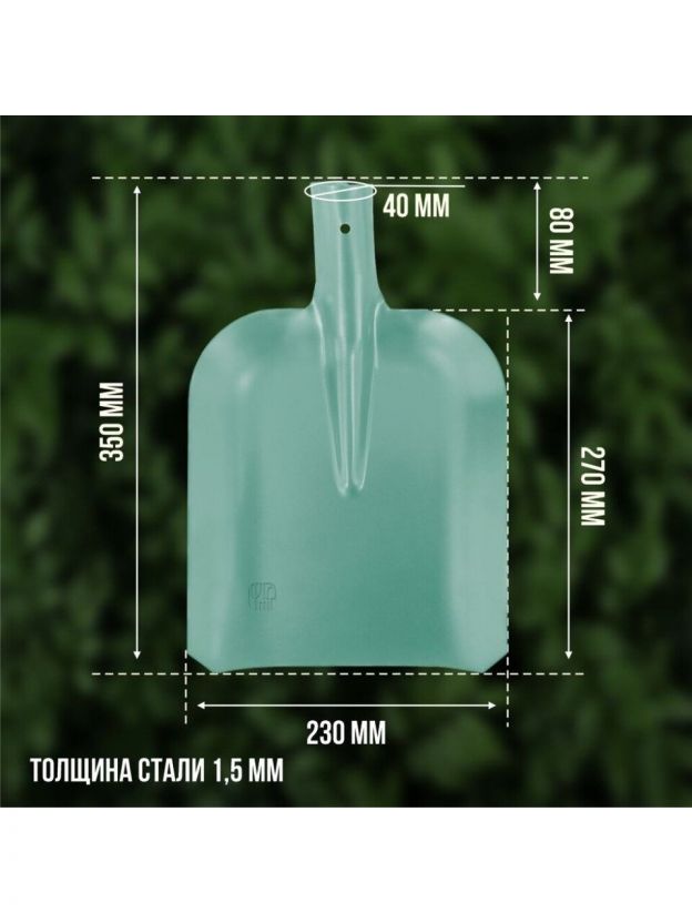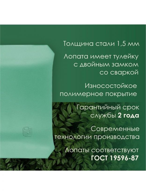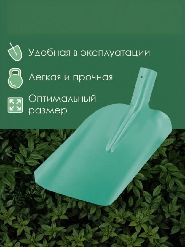 Цвет лопаты — бирюзовый, что добавляет яркости и стиля в ваш рабочий процесс. Эта лопата не только функциональна, но и эстетически привлекательна. Отсутствие рукоятки на черенке позволяет подобрать наиболее удобную для вас ручку, а наличие черенка в комплекте избавляет от необходимости поиска дополнительных деталей.