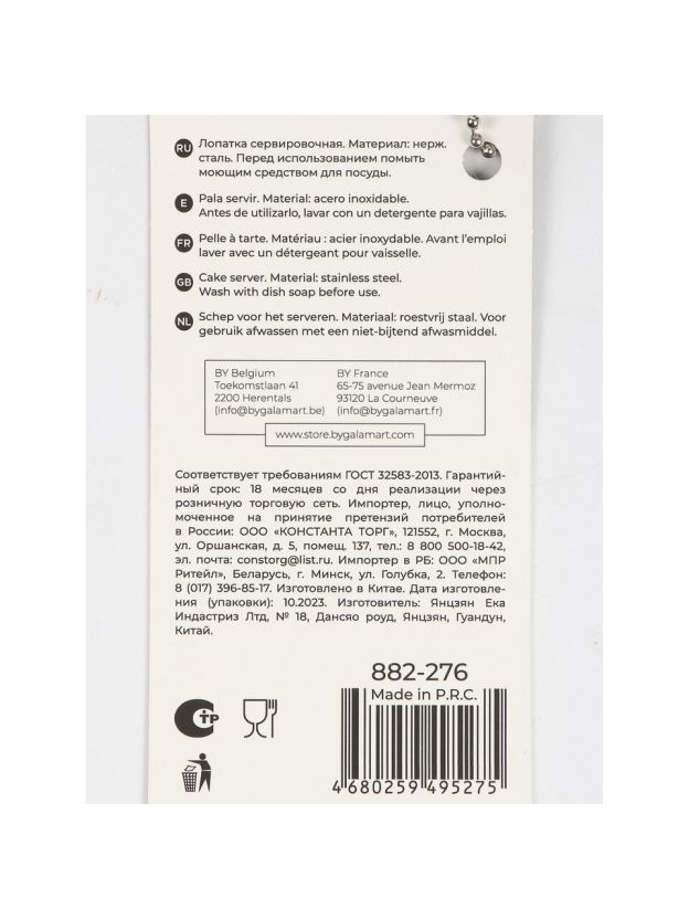 Лопатка для торта, нержавеющая сталь, 18х6 см, навеска, Satoshi, Имари, 882-276