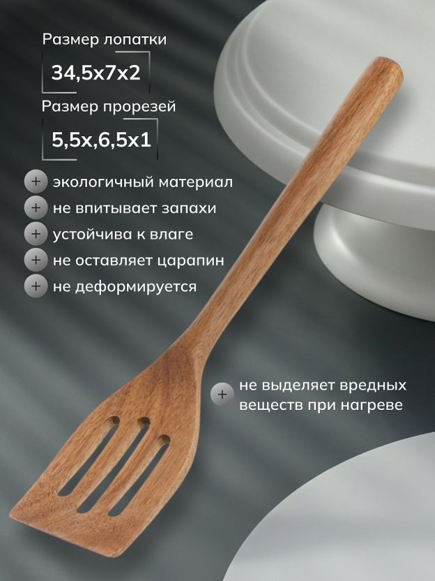 Лопатка кулинарная акация, 34.5х7х2 см, с прорезями, UT42734A5