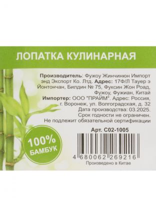 Универсальная бамбуковая лопатка C02-1005 — экологичный выбор для кухни: не царапает антипригарное покрытие, долговечна, безопасна для здоровья.