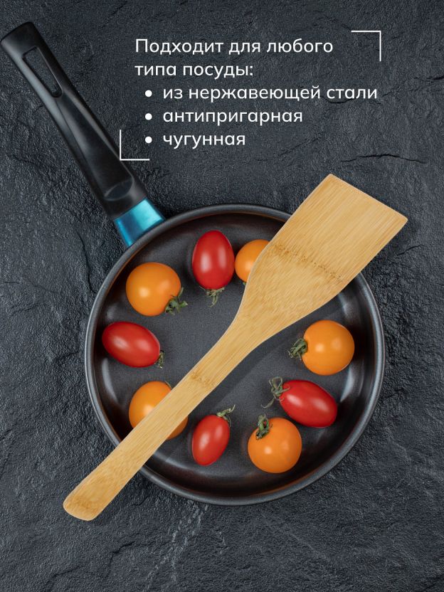 - Безопасна для антипригарных сковород: натуральный бамбук не повреждает покрытие;
