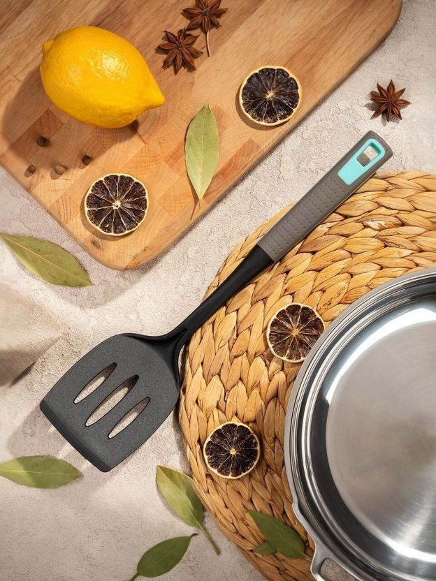 Лопатка кулинарная выполнена из высококачественного термостойкого нейлона, он не выделяет вредных веществ при нагреве, неприхотлив в использовании. Все изделия абсолютно безопасны для любых антипригарных покрытий. Эргономичная ручка не позволит инструменту выскальзывать из рук. Нейлон - безопасен для еды, не токсичен, без запаха.