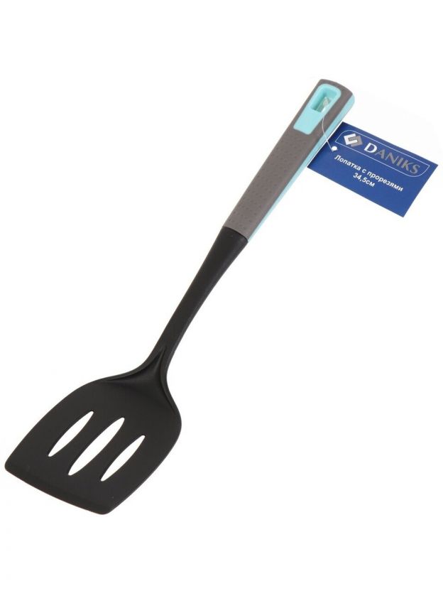 Лопатка кулинарная нейлон, 34.5 см, с прорезями, навеска, Daniks, Грей, Y4-4957