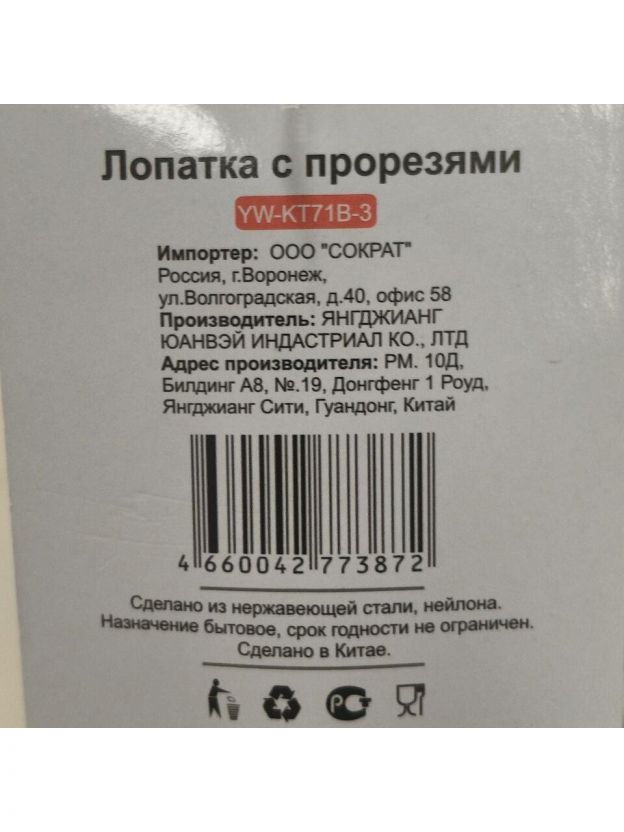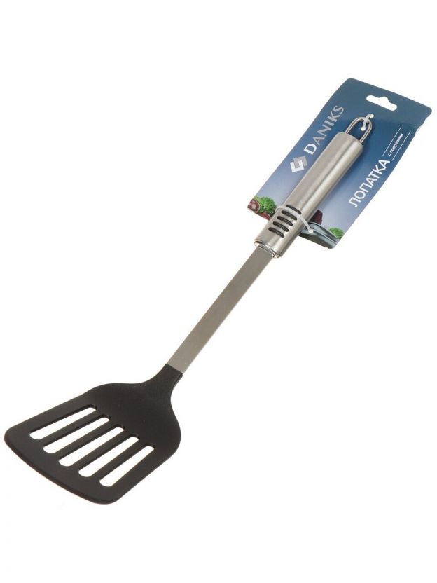 Лопатка кулинарная нейлон, с прорезями, навеска, черная, Daniks, Пасто, YW-KT71B-3