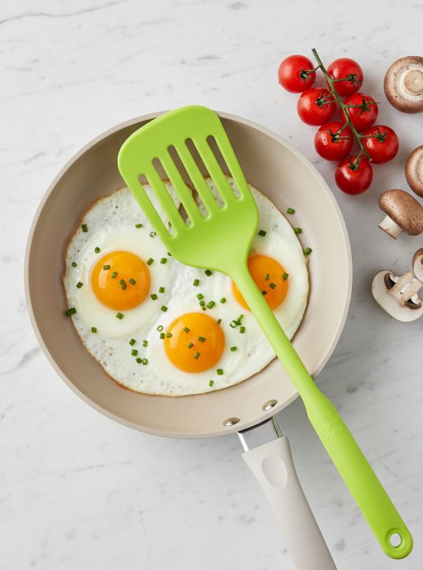 - Безопасность для антипригарных покрытий — нейлоновая лопатка не царапает посуду.