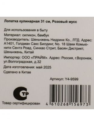 Лопатка выполнена из пищевого силикона и натурального бамбука. Мыть в посудомоечной машине не рекомендуется — лучше использовать ручную мойку для сохранения структуры бамбука.