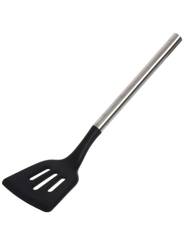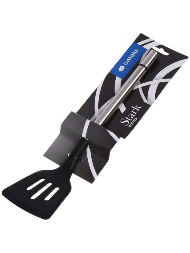 Лопатка кулинарная универсальная, силикон, с прорезями, навеска, черная, Daniks, Stark, YW-KT258-4