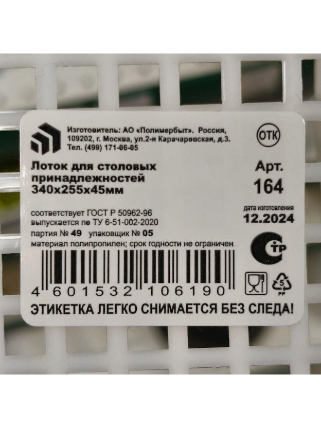 Лоток для столовых приборов 34х25.5х4.5 см, в ассортименте, Полимербыт, 4 316 400
