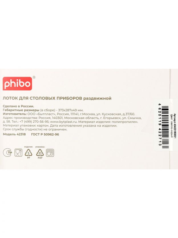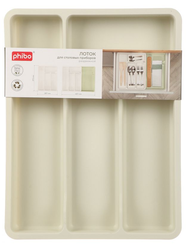 Какой размер у раздвижного лотка для столовых приборов Бытпласт Phibo?