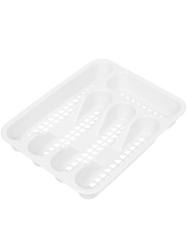 Лоток для столовых приборов помогает организовать пространство и навести порядок в кухонном шкафу. Когда ложки, вилки, ножи, открывалки аккуратно распределены по секциям, любой предмет можно легко найти и быстро достать в нужный момент. Прочный твердый полипропилен, из которого сделан лоток, не боится влаги и легко отмывается от загрязнений.