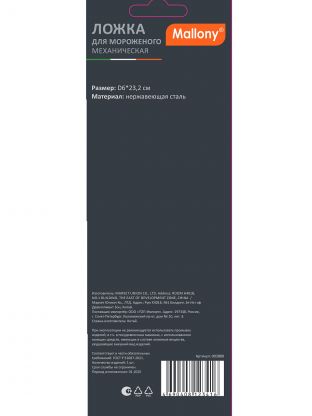 Ложка для мороженного, нержавеющая сталь, 25х6 см, механическая, навеска, Mallony, 003880