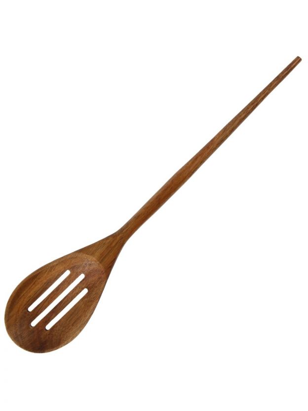 Ложка кулинарная из акации Daniks — идеальный выбор для тех, кто ищет безопасную и долговечную кухонную утварь. Натуральное дерево акации известно своей прочностью, устойчивостью к деформации и минимальным впитыванием запахов. Благодаря прорезям ложка удобна для сервировки гарниров, овощей и пасты, а также для перемешивания соусов и супов.