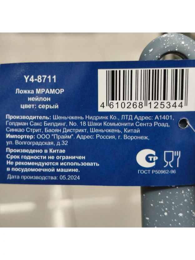 Ложка изготовлена из высококачественного нейлона, который безопасен для контакта с любыми поверхностями и продуктами. Это особенно важно при работе с антипригарным покрытием посуды, которое может быть повреждено другими материалами. Нейлон не царапает покрытие, поэтому поварская ложка не только удобна в использовании, но и долговечна.