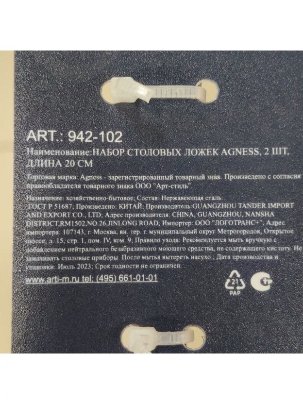 Какой размер и материал у ложек Agness 942-102?