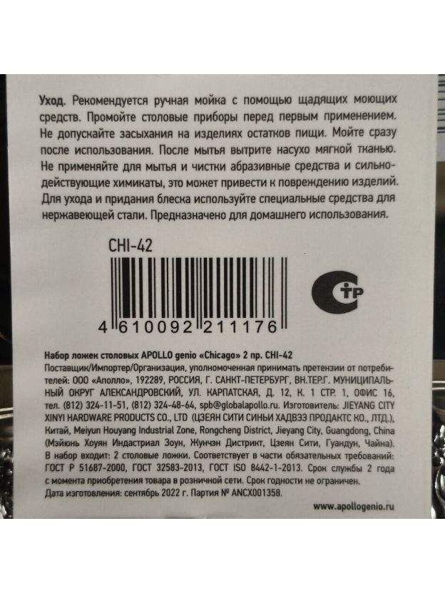 Закажите ложки Apollo Chicago и получите практичный столовый набор с быстрой доставкой. Надёжность бренда, современный стиль и выгодная цена — залог вашего комфорта каждый день.