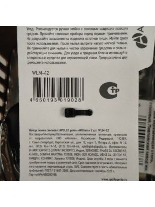 Ложки из нержавеющей стали Apollo William WLM-42 — прочный столовый набор для 2 персон. Серебристый цвет, современный дизайн, идеальное решение для дома и подарка.