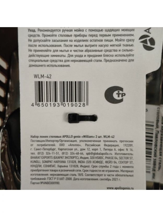 Выбирайте ложки Apollo William WLM-42 — выгодное предложение для тех, кто ценит надёжность, современный дизайн и универсальность. Оформите заказ с быстрой доставкой и получите качественный столовый набор напрямую из Индии.