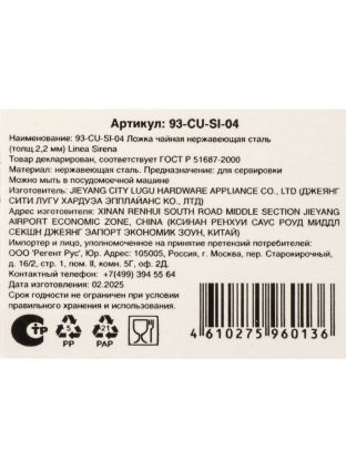 Ложка чайная Regent Inox Linea Sirena из нержавеющей стали — идеальный выбор для подарка и ежедневного использования: долговечность, стиль и удобство в каждой детали.