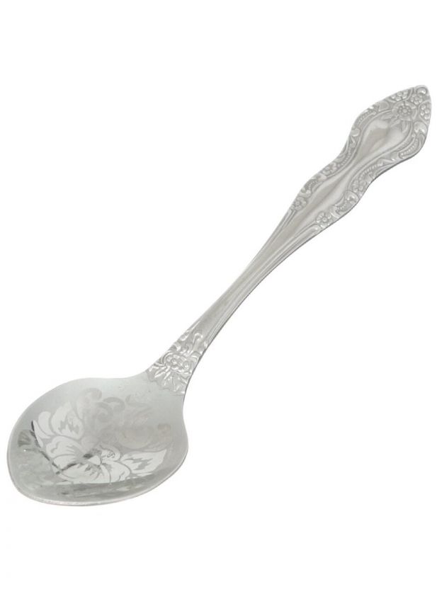 Длина ложки — 19 см, рассчитана на одну персону, ручка металлическая, фигурная, стиль — классический, без подставки и подарочной упаковки.