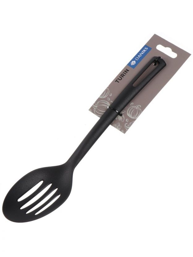 Ложка поварская нейлон, с прорезями, навеска, черная, Daniks, Turin, YW-KT309-5