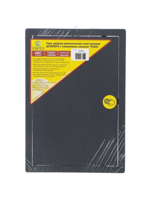 Люк-дверца ревизионная пластик, 200х300 мм, с нажимным замком "PUSH", серый, Viento