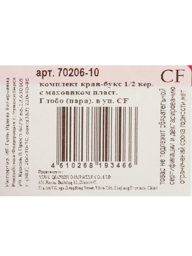 Маховик с кран-буксой 2 шт, индивидуальная упаковка, ComfortFactor, Глобо, 70206-10