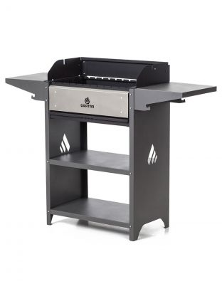 Отличный гриль-мангал для семейных посиделок. Топка с декоративной накладкой из нержавеющей стали и выдвижным зольником для регулировки интенсивности жара.