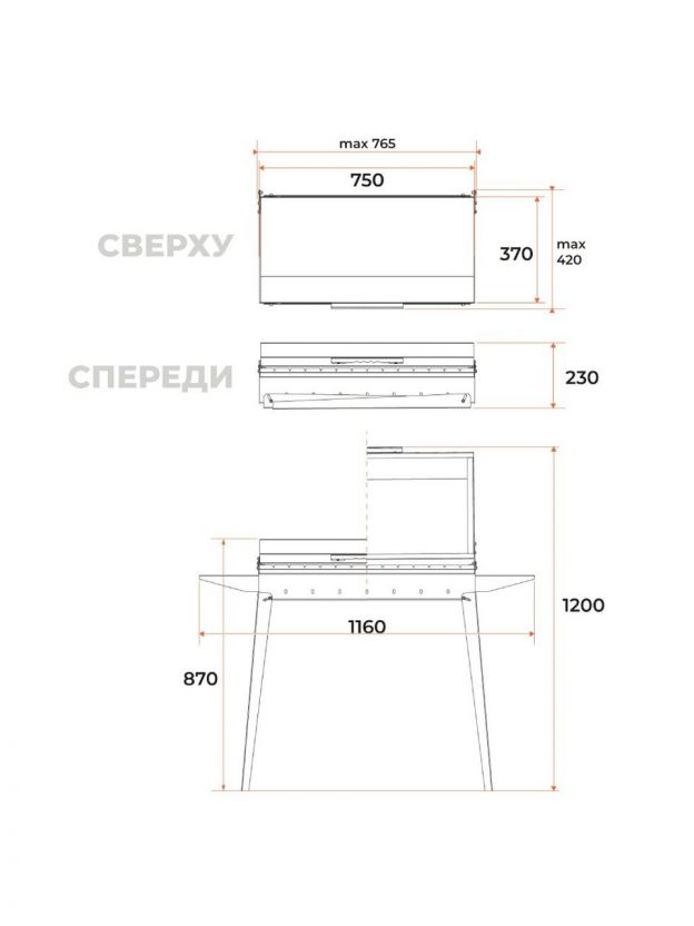 Мангал-гриль 860х400х1162 мм, 2 мм, с крышкой, МКЛ 750К, Gratar