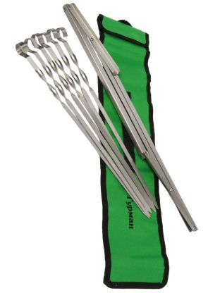 Плоское лезвие предотвращает проворачивание мяса, а нержавеющая сталь устойчива к ржавчине и легко моется. Это удобно для частых выездов на природу и позволяет использовать шампуры долгое время без потери качества.