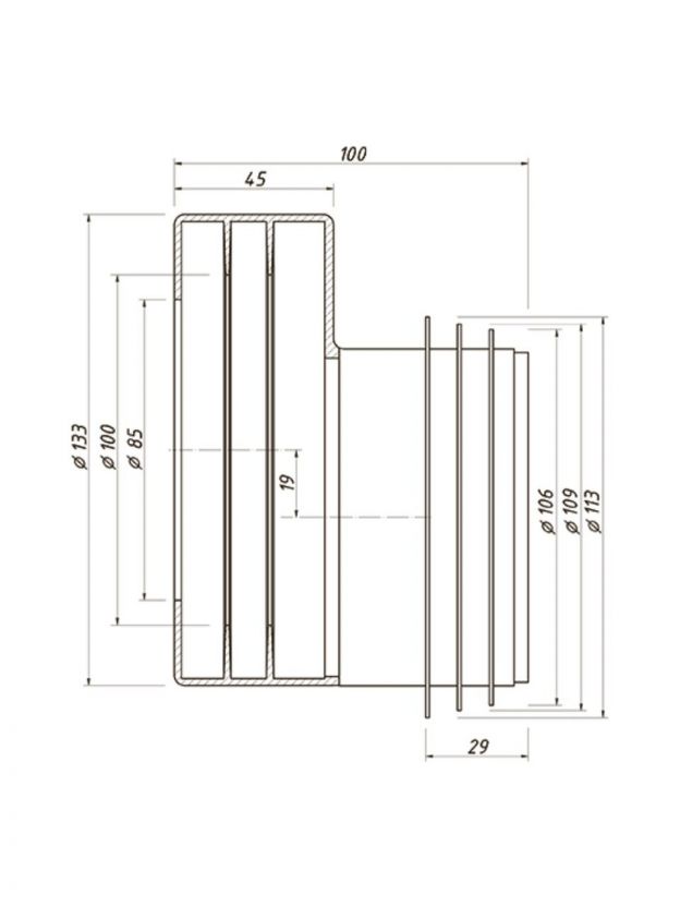 - Манжета для соединения унитаза с канализацией в малогабаритных туалетных комнатах с ограниченным пространством;