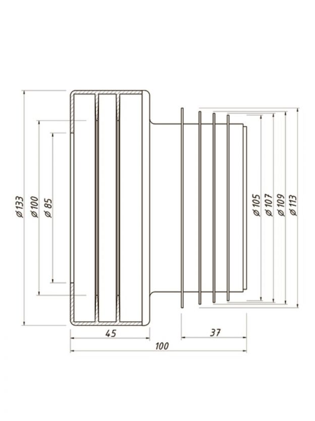 - Манжета для соединения унитаза с канализацией в малогабаритных туалетных комнатах с ограниченным пространством;