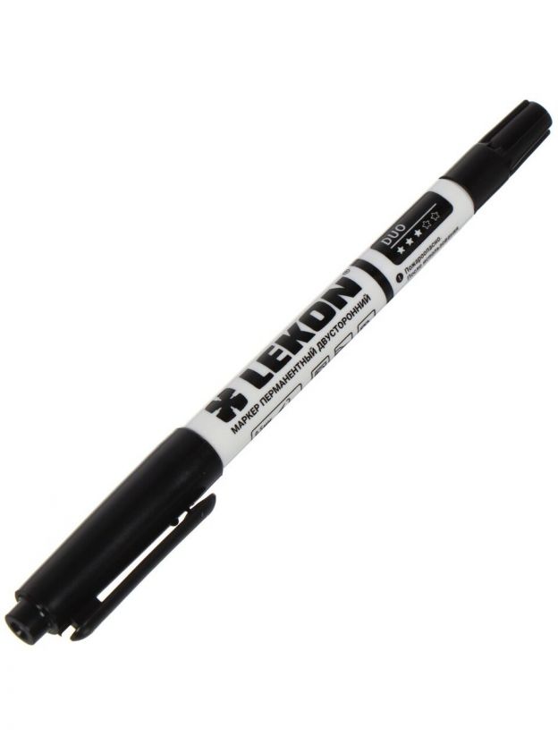 Перманентный маркер черный, двухсторонний - это два маркера в одном. Подходит как для повседневной, так и для деликатной маркировки на всех типах поверхностей: металл, дерево, резина, бетон/камень/кирпич, стекло, пленка, картон а так же для разметки проводки. Чернила на спиртовой основе, устойчивы к климатическим изменения, не стираются и не выцветают в течение длительного времени. Корпус маркера изготовлен из прочного пластика.
