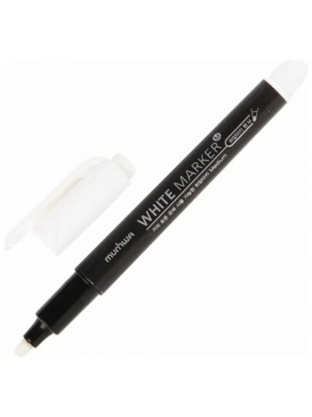 Перманентный белый пулевидный маркер Munhwa 2-4 мм, на водной основе WPMM-05 предназначен для маркировки таких поверхностей как: резина, дерево, металл, пластик, ПВХ, плитка, стекло, керамика, картон, кожа.