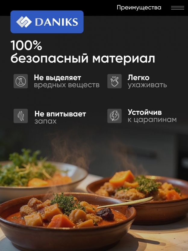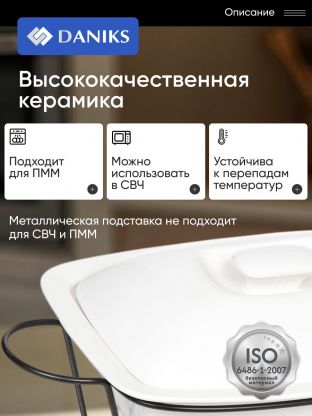 • Можно использовать в СВЧ и духовке (ставить только в холодную духовку).