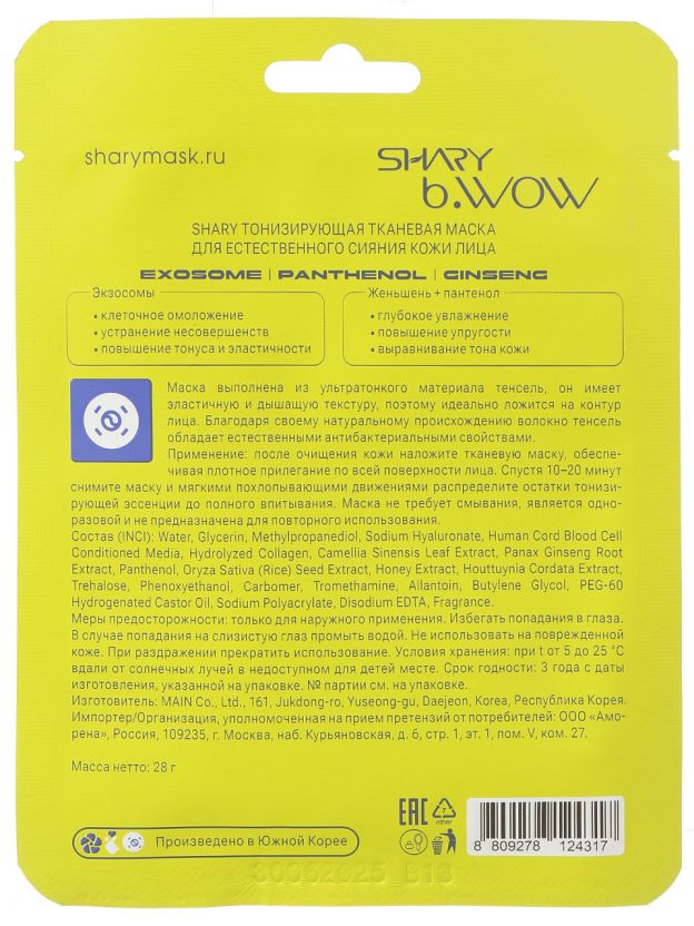 Тканевая маска Shary: мгновенный тонус и естественное сияние кожи лица за 20 минут — корейский уход по доступной цене, 25 г