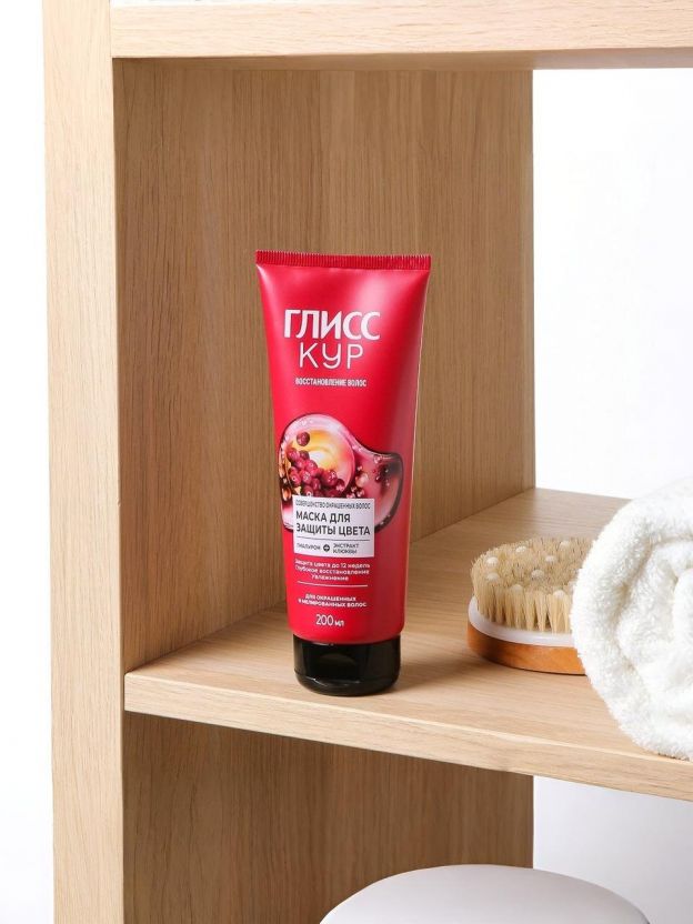 Маска для волос ГЛИСС КУР Защита цвета — восстановление и сияние окрашенных волос за 5 минут. Удержание цвета до 8 недель, объём 200 мл, выгодная цена.